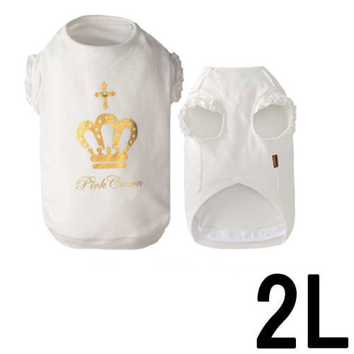 クロスの真ん中についたラインストーンがオシャレのポイント☆【ペット館】PinkCrowon 09 ピンククラウン フリル トレーナー 2L<オフホワイト>【キャンセル・変更不可】【ペット館】と記載のあ