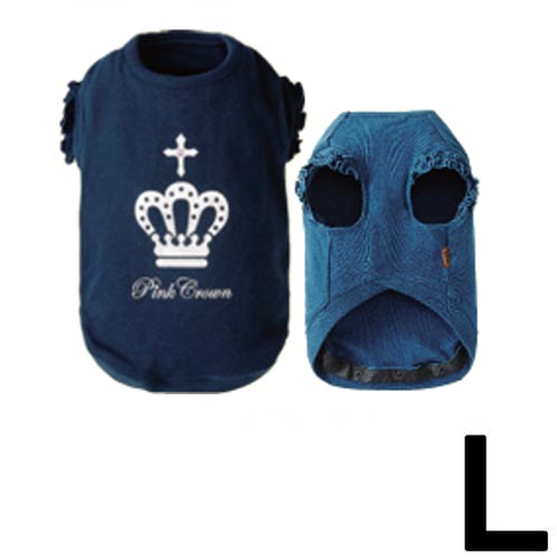 クロスの真ん中についたラインストーンがオシャレのポイント☆【ペット館】PinkCrowon 09 ピンククラウン フリル トレーナー L<ネイビーブルー>【キャンセル・変更不可】【ペット館】と記載のあ