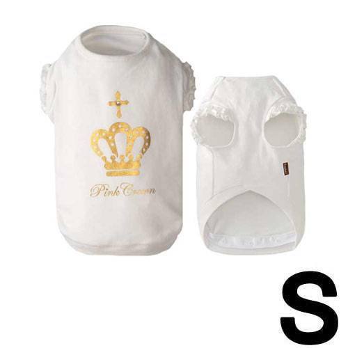 クロスの真ん中についたラインストーンがオシャレのポイント☆【ペット館】PinkCrowon 09 ピンククラウン フリル トレーナー S<オフホワイト>【キャンセル・変更不可】【ペット館】と記載のある