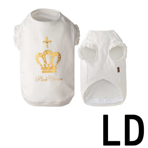 クロスの真ん中についたラインストーンがオシャレのポイント☆【ペット館】PinkCrowon 09 ピンククラウン フリル トレーナー LD<オフホワイト>【キャンセル・変更不可】【ペット館】と記載のあ