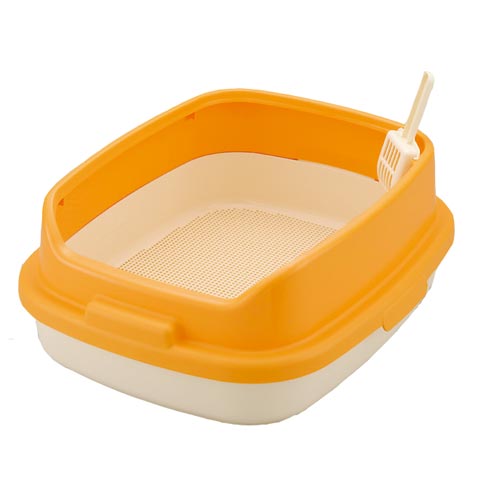 成猫がゆったりできるオープンタイプのすのこ付きトイレ☆【ペット館】リッチェル コロル ネコトイレ すのこ付 55H<オレンジ>【キャンセル・変更不可】【ペット館】と記載のある商品のみ同梱可能です。