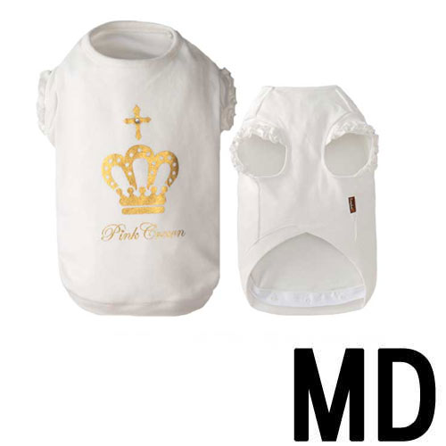クロスの真ん中についたラインストーンがオシャレのポイント☆【ペット館】PinkCrowon 09 ピンククラウン フリル トレーナー MD<オフホワイト>【キャンセル・変更不可】【ペット館】と記載のあ
